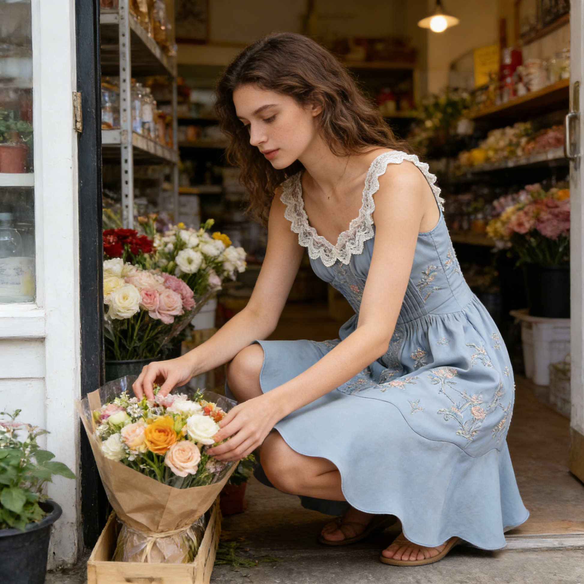 Elevate your wardrobe with this sophisticated blue lace V-neck floral dress. The delicate lace detailing and flattering V-neckline create an elegant silhouette perfect for both special occasions and refined everyday wear. The floral pattern adds visual interest while the cool blue tones offer versatility for pairing with your existing accessories. Crafted for comfort and style, this dress transitions seamlessly from day to evening, making it an essential addition to any discerning woman's closet.