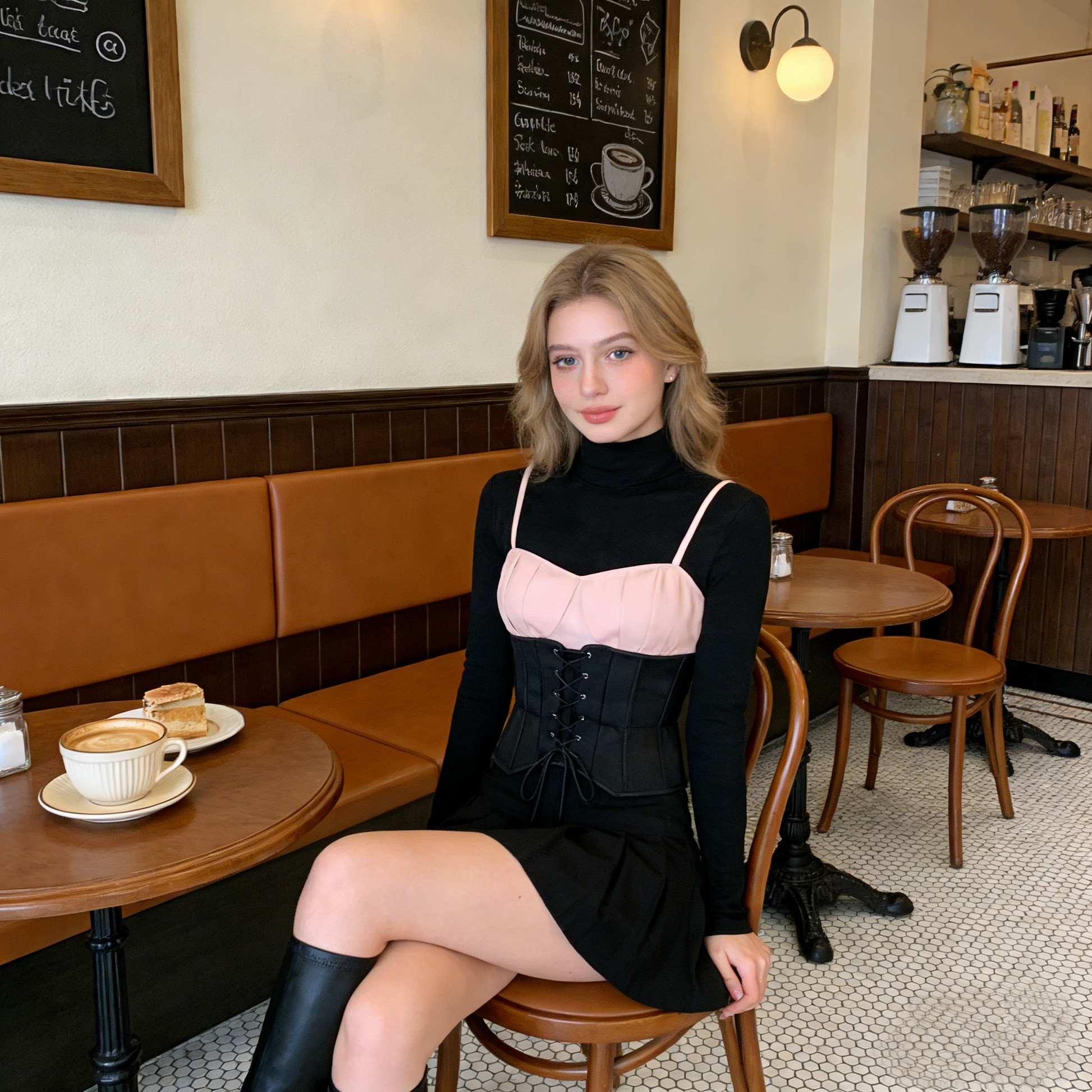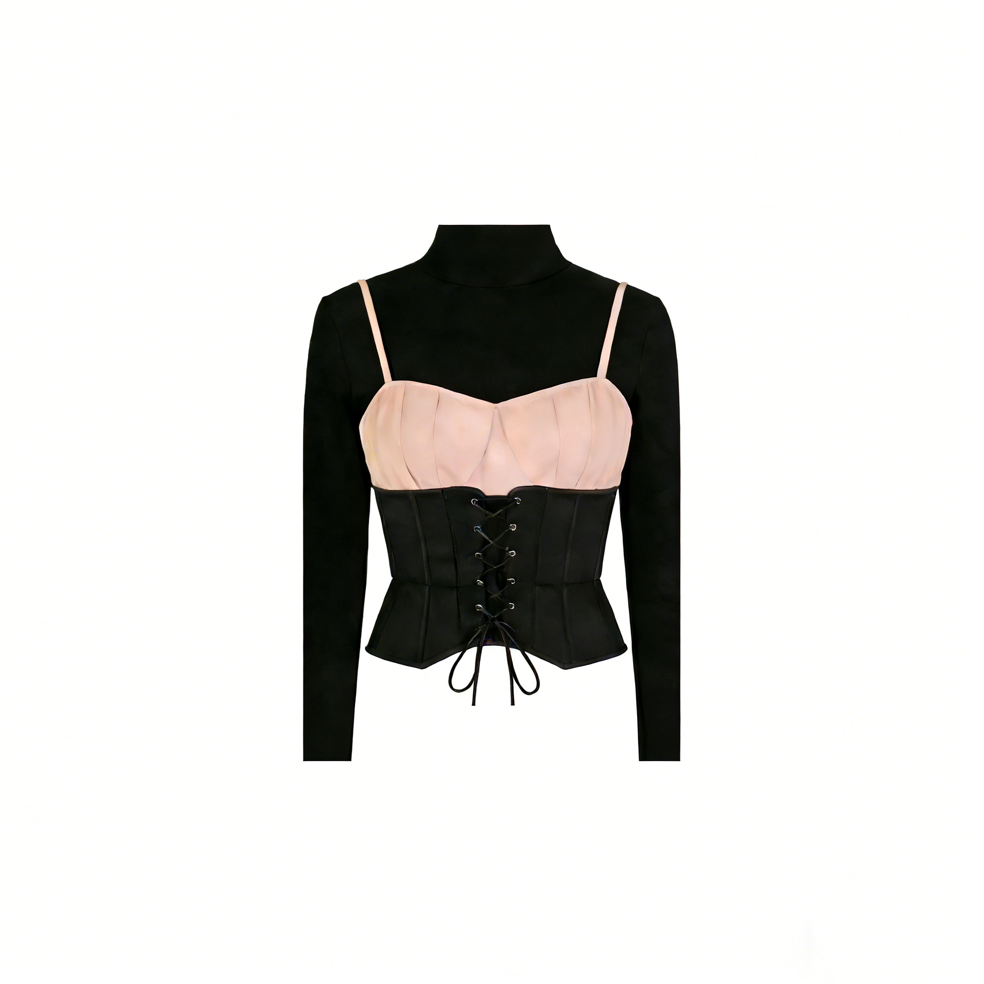 Elevate your gothic two-tone corset top. The contrast of soft blush satin bustier panels and structured black corset fabric delivers bold, gothic-inspired appeal, while the front lace-up closure adds dramatic detail and customizable fit. Constructed from a smooth, lustrous satin and durable corset material, this piece offers a sculpting, figure-hugging silhouette with structured shape retention. The cropped, waist-cinching silhouette pairs effortlessly with high-waisted leather trousers, tulle skirts, or vintage denim for a polished, period-accurate look. Perfect for styling with fishnet tights and platform boots for a darkly romantic evening out, or layered over a turtleneck for a sophisticated daytime ensemble. A versatile essential that bridges classic gothic aesthetics with contemporary edge.